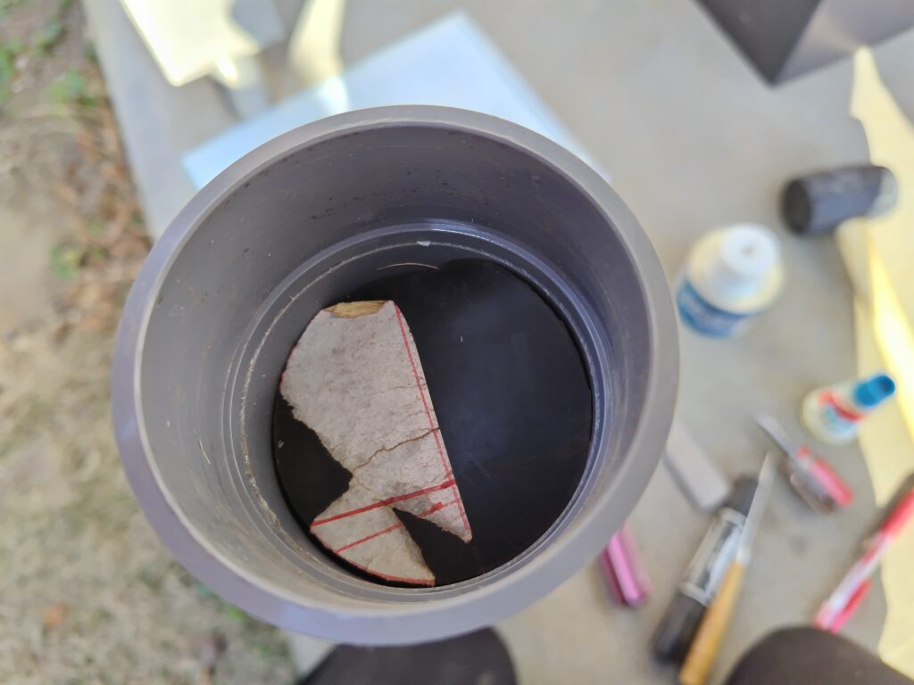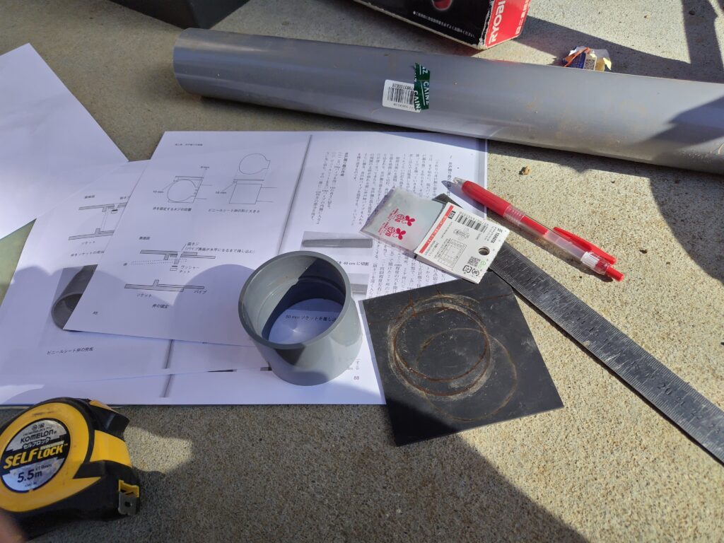ゴムシートの大きさを50mmの塩ビパイプの内径に合わせないといけなかったところ、50mmの塩ビソケットの内径に合わせて切ってしまいました。